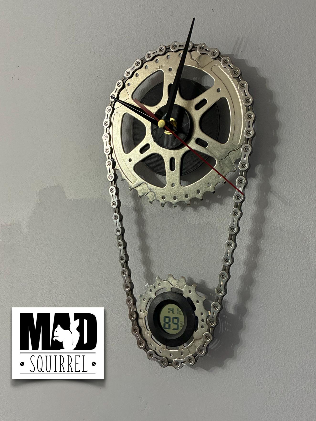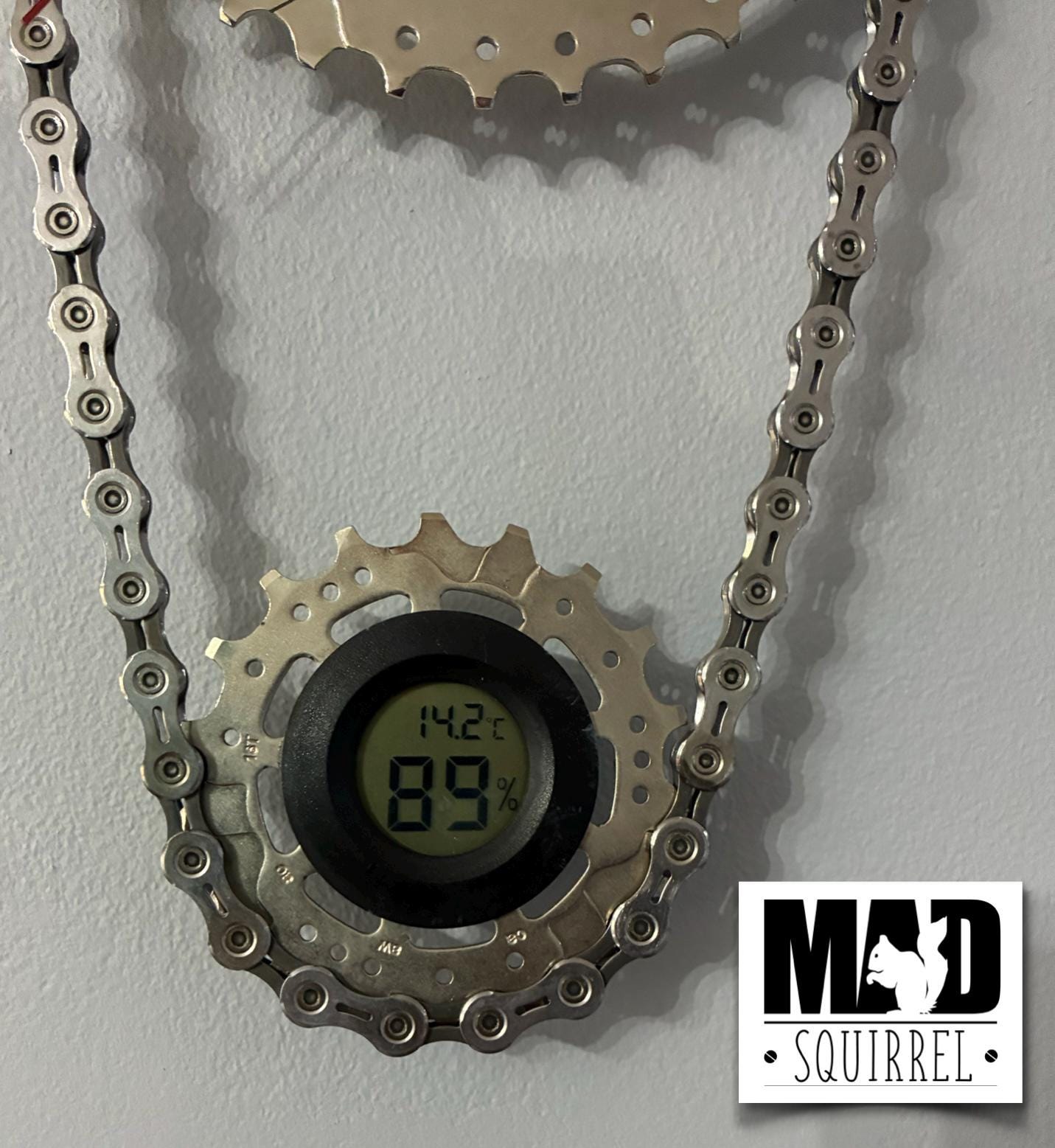 Double Bicycle Sprocket and Chain Clock with Temperature and Humidity Display