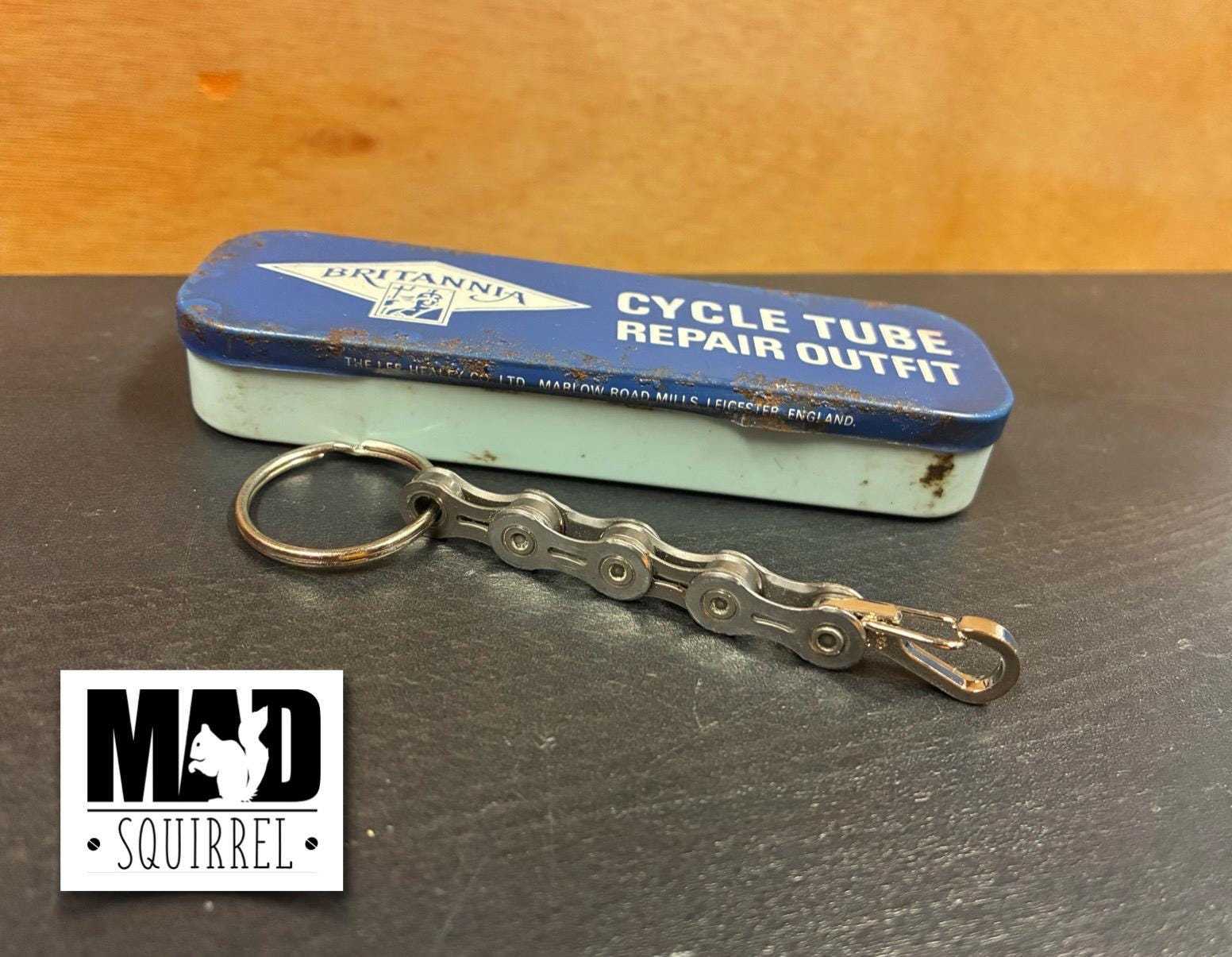 Bicycle Chain Keyring with a special Vintage Puncture Repair Tin as a gift box